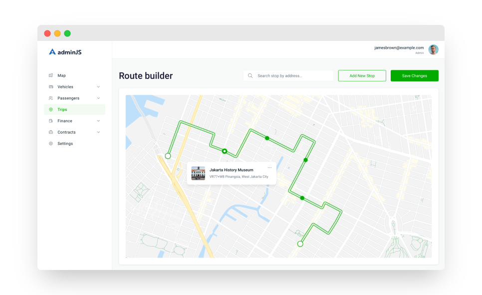 We’ve used AdminJS to develop a mobility startup – Bussr – and integrated the required location-based services within its administration panel, which provided their Operations Department with the ability to assign daily bus routes directly on the map, instead of manually uploading .CSV files with geo coordinates into the database.