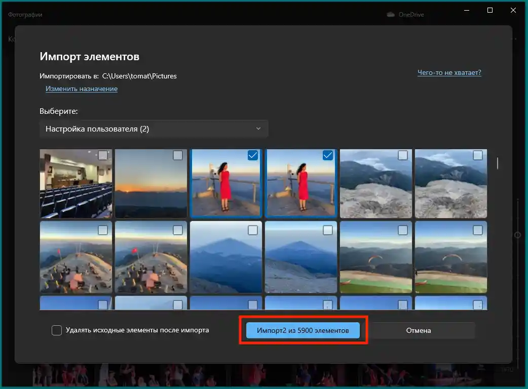 Запуск импорта фотографий с айфона в приложении Фотографии
