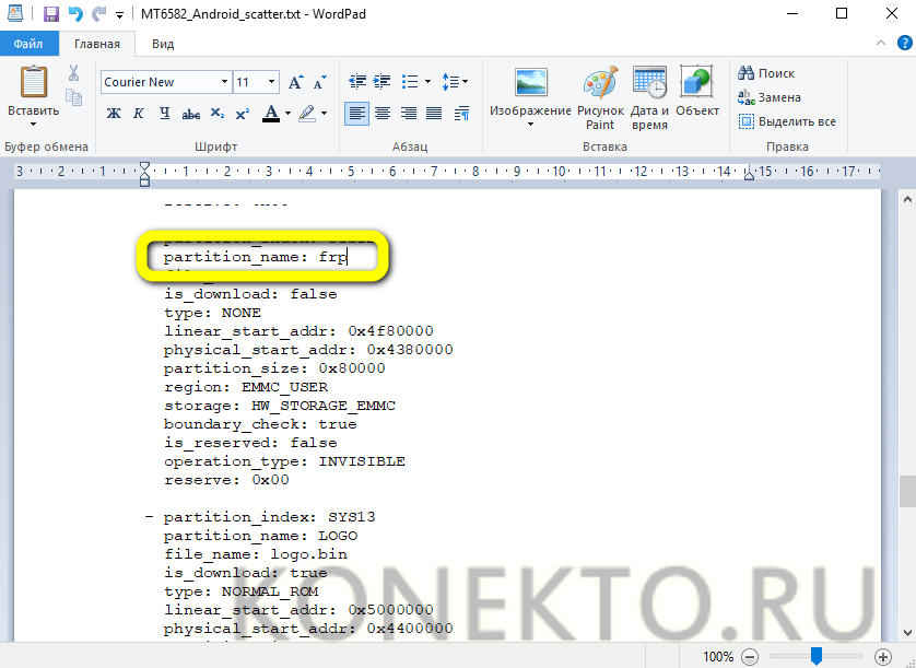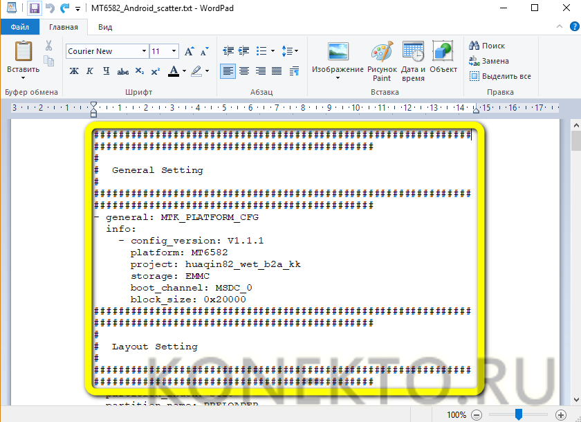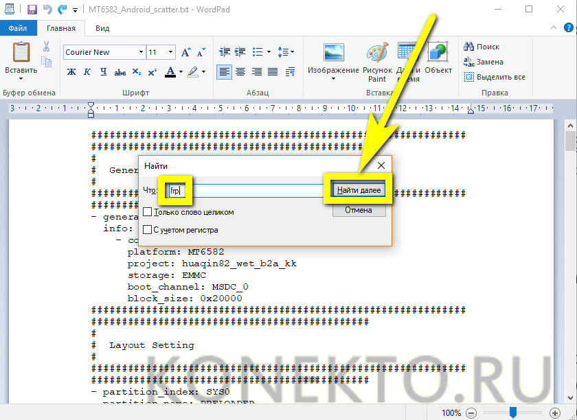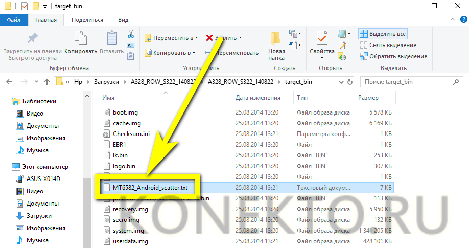 И открыть в нём scatter-файл, имеющий расширение TXT. В примере искомый документ называется MT6582_Android_scatter.txt; на практике пользователю нужно ориентироваться на указанное ключевое слово.