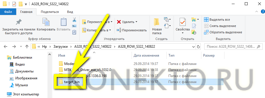 Скачать и распаковать прошивку для своей модели смартфона на Андроиде, перейти в каталог target_bin.