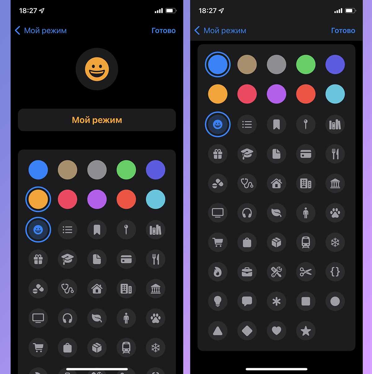 33. В статусной строке может отображаться один из индикаторов (на фото сверху), который будет сигнализировать о работе соответствующего профиля режима Фокусирование.