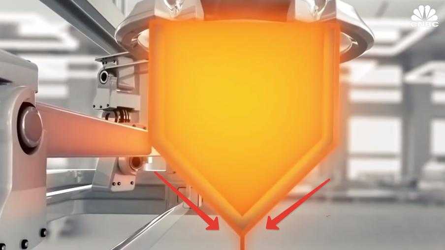 Суть технологии очень проста: компоненты будущего стекла (песок, известь, сода) подаются в плавильные баки, нагреваются до 1000 градусов. Расплавленное стекло выливается в V-образный желоб, наполняя который, начинает равномерно переливаться через его края, образуя два тонких листовых потока.