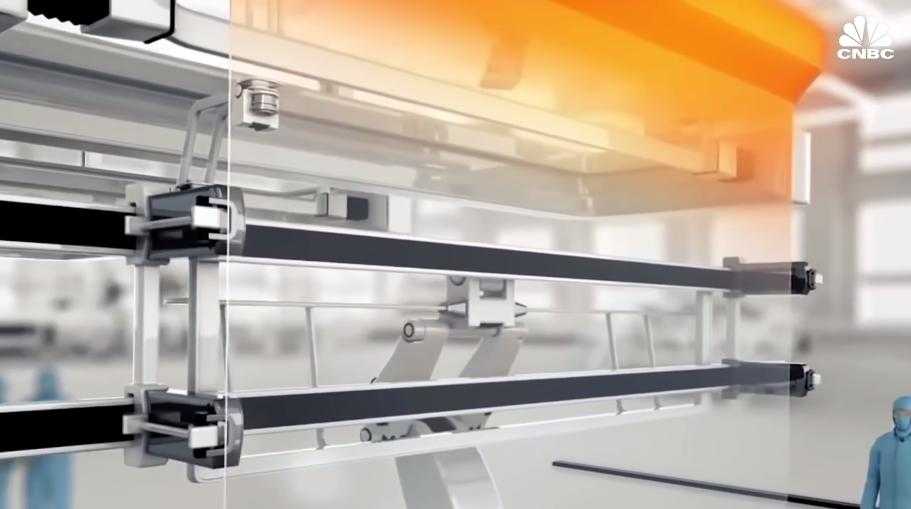 Затем эти два потока сплавляются в один лист. В итоге получается идеально плоская однородная по толщине и способная выдерживать дальнейшую обработку поверхность. Остывшее стекло срезается роботами, после чего отправляется на закалку с помощью химической обработки.