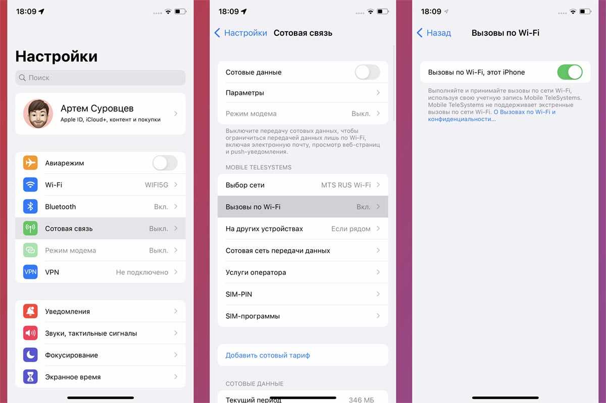 Не забывайте, что для работы фишки физическая SIM-карта должна быть установлена в смартфоне или eSIM-карта должна быть активна. При извлечении или отключении нужной карточки опция звонков по Wi-Fi пропадает.