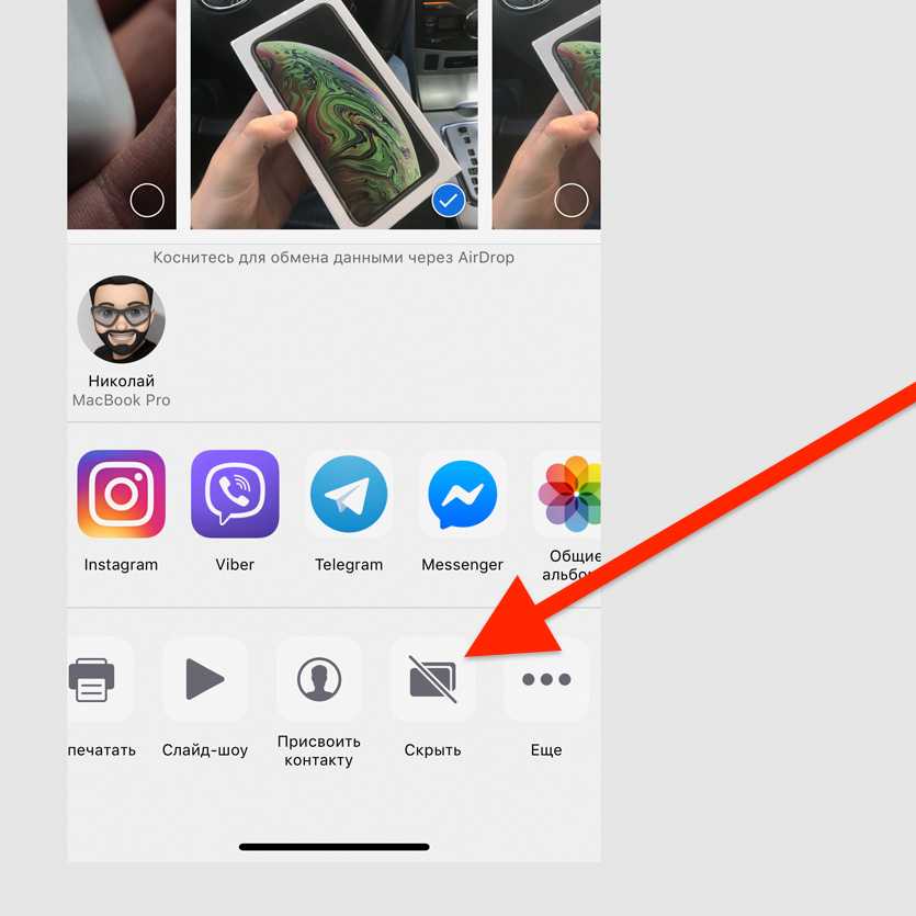 Выберите «Скрыть» в меню дополнительных действий для любой фотографии