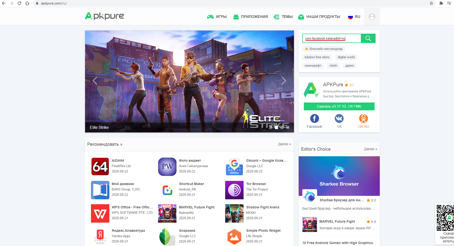 Зайдите на apkpure.com, вставьте идентификатор программы в строку поиска. После открытия нужной страницы вы найдете ссылку для загрузки файлов .apk или .xapk.