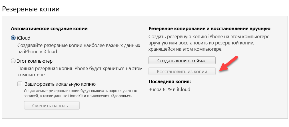 Восстановление из резервной копии iCloud