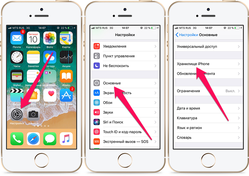 Шаг 1. Перейдите в меню «Настройки» → «Основные» → «Хранилище iPhone» («Хранилище iPad» в случае с планшетами Apple).