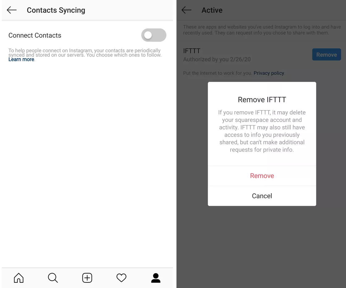 Чтобы запретить Instagram просматривать вашу телефонную книгу: