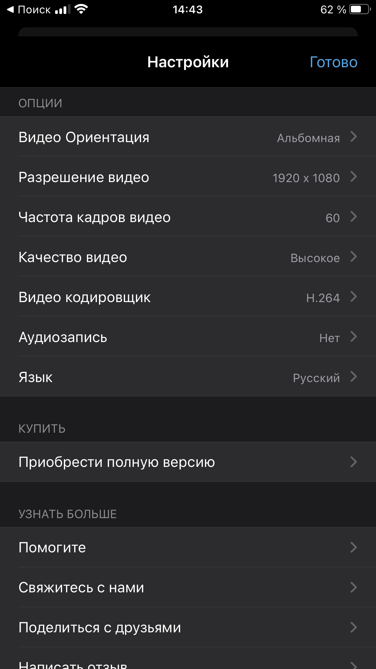 Самое главное – выставите ключевые параметры: разрешение, количество кадров в секунду (FPS), качество и формат видео, а также ориентацию. Если под рукой нет хорошего микрофона, то рекомендуем указать динамик смартфона в качестве микрофона, активировав тумблер Аудиозаписи (либо выбрав «Нет», при наличии микрофона).