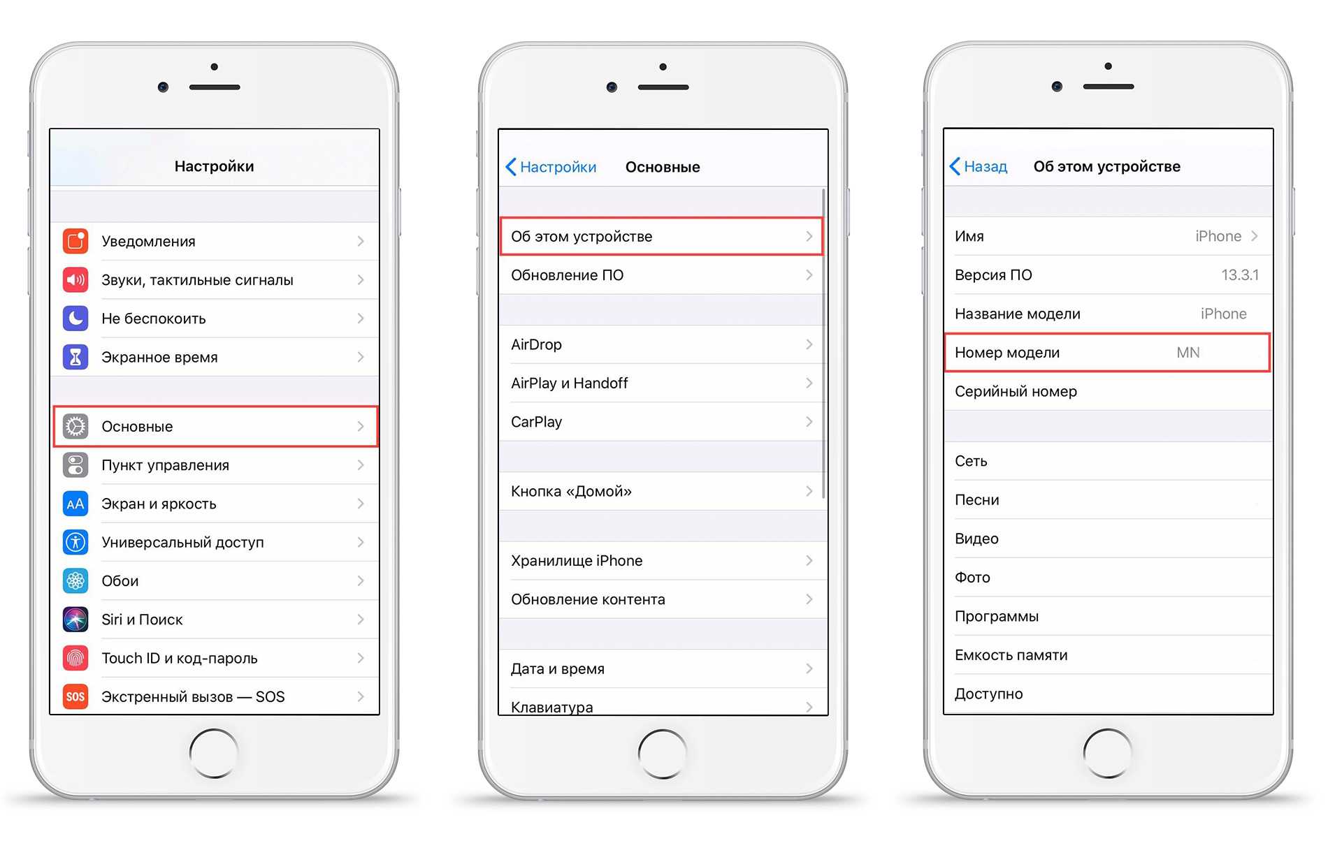 «Основные» → «Об этом устройстве» и обратите внимание на пункт «Номер модели».