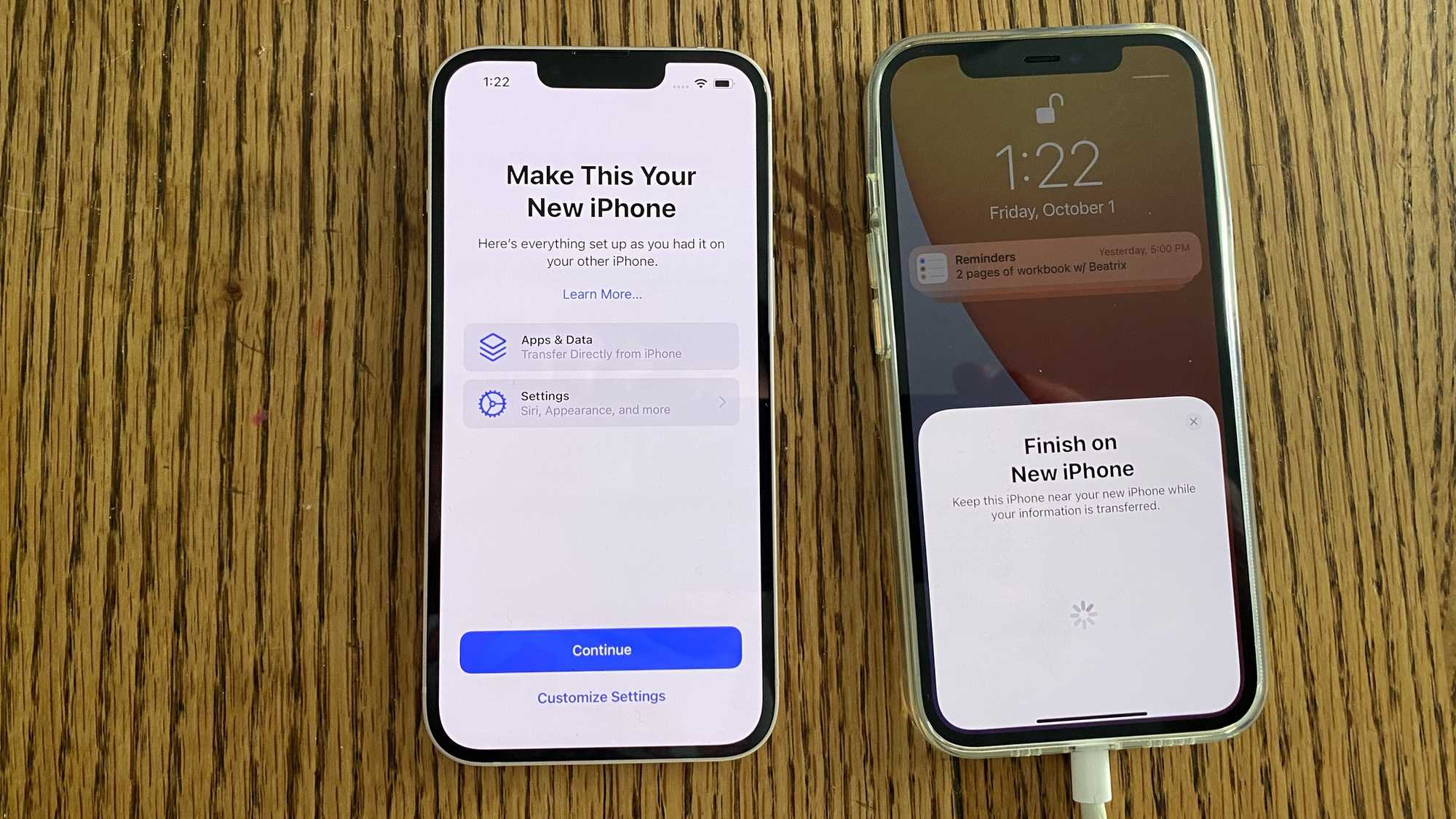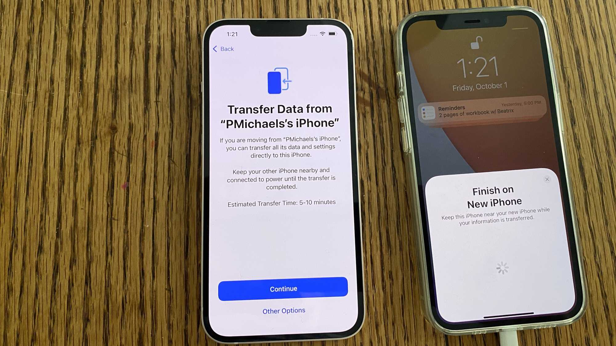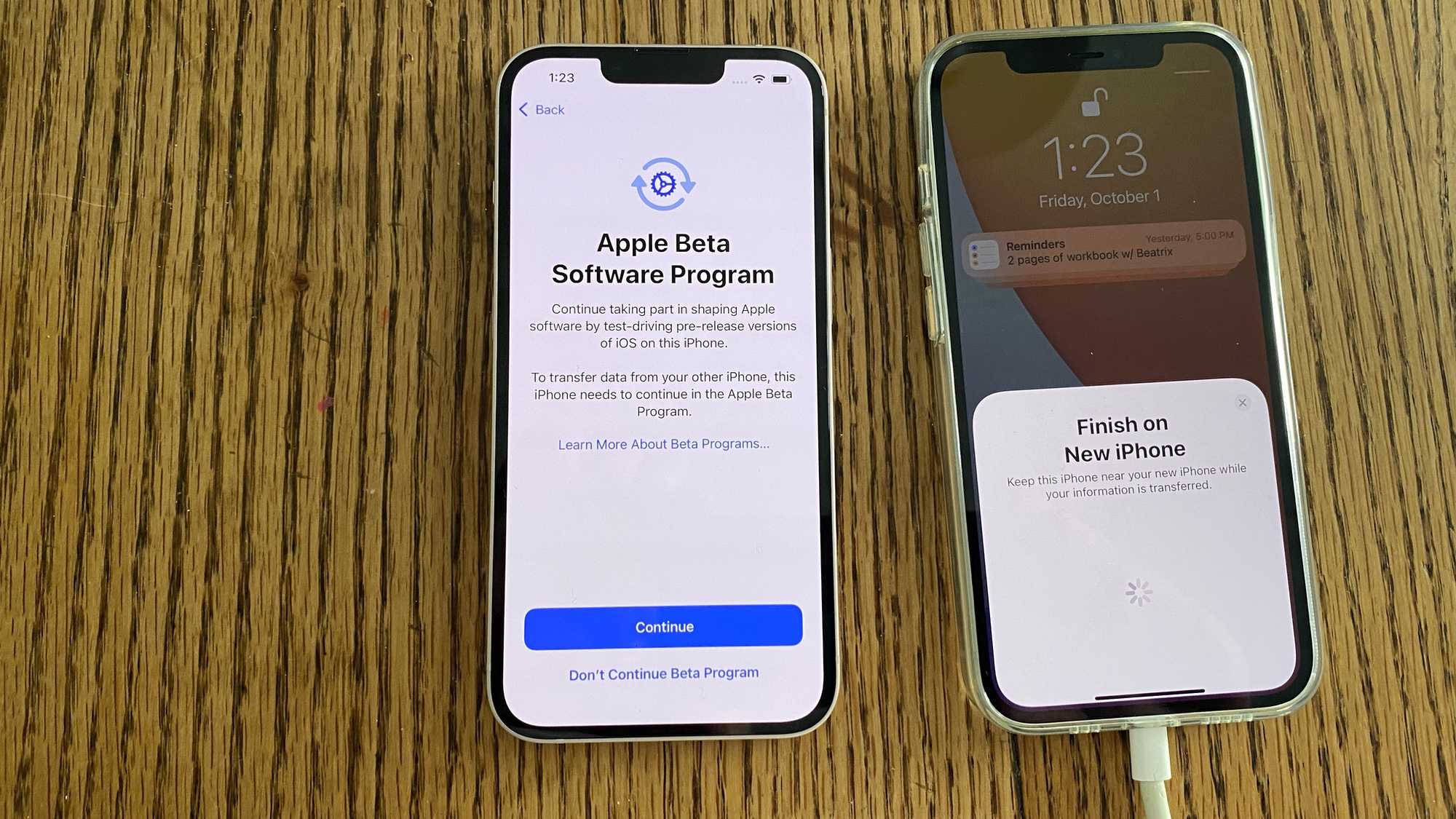 (Изображение предоставлено: Руководство Тома) Примечание. Если вы, как и я, используете бета-версию iOS 15 на своем старом iPhone, вам нужно либо загрузить бета-версию на новое устройство, либо нажать на поле для выхода из программы бета-тестирования. Если вы останетесь с бета-версией, передача будет приостановлена, пока ваш новый iPhone загрузит последнюю бета-версию и перезапустится.