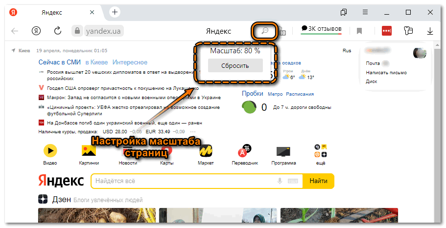 В яндексе, как и во всех других браузерах, есть возможность несколькими способами изменить параметры просмотра страниц интернета. Можно, к примеру, нажать определенную комбинацию клавиш на клавиатуре или, воспользовавшись мышкой, вручную изменить некоторые настройки браузера. Ещё есть возможность настроить «под себя» систему ПК или использовать системную программу «Экранная лупа».