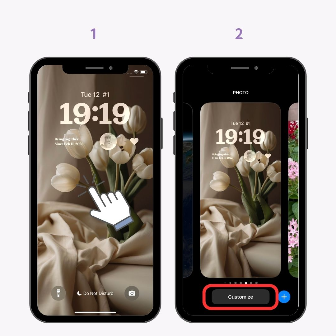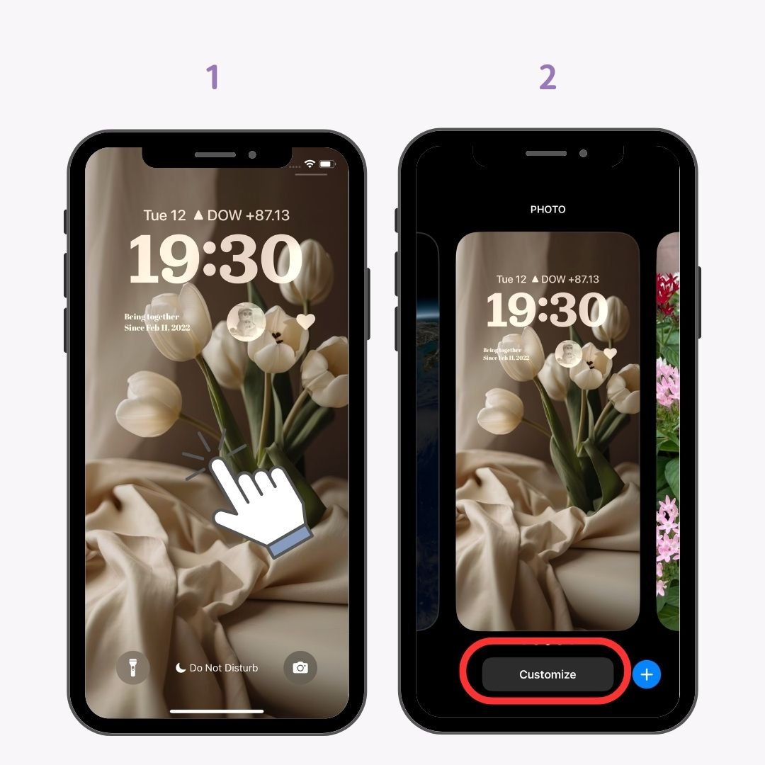 - Нажмите и удерживайте экран блокировки, пока не появится кнопка «Персонализация» в нижней части iPhone.