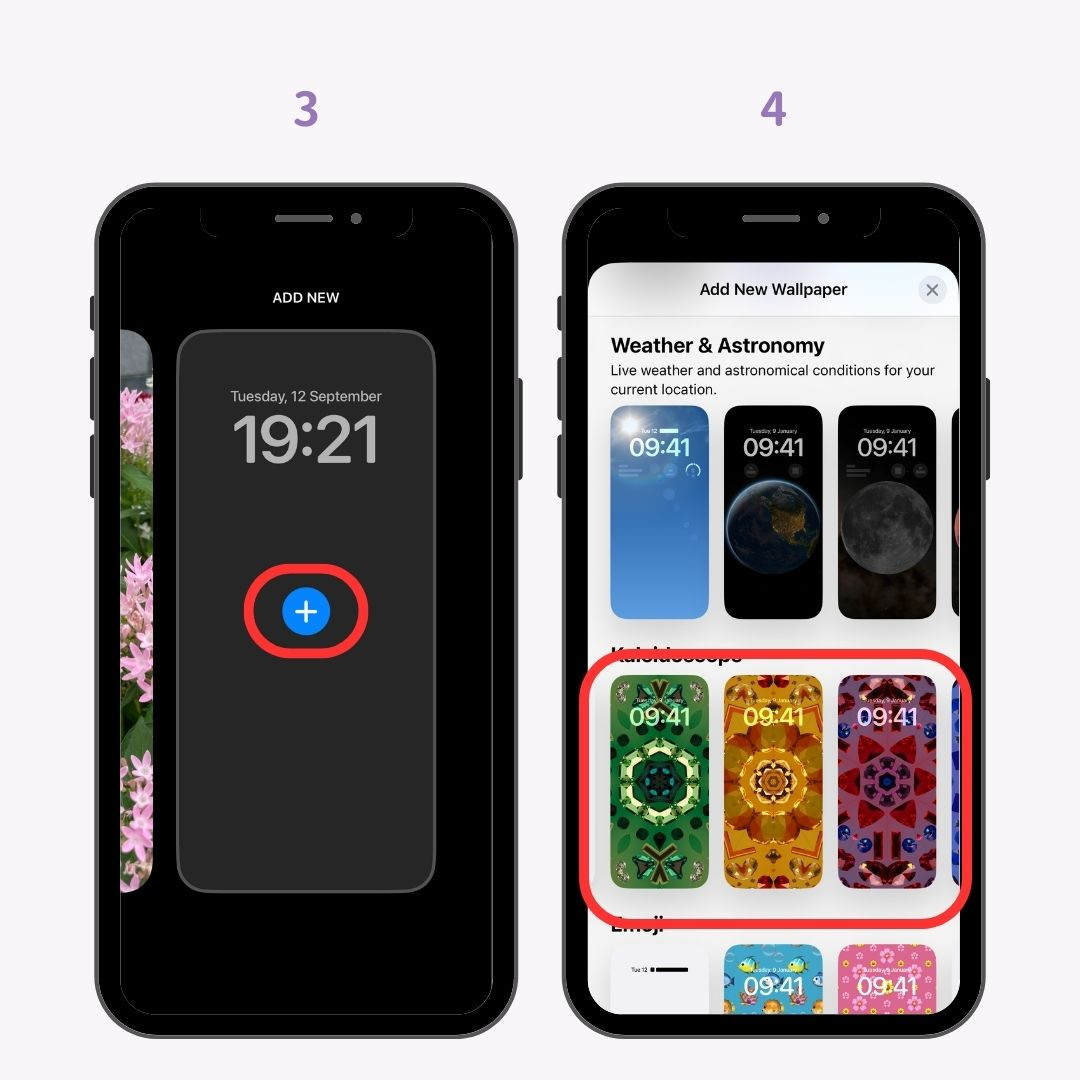 - Нажмите кнопку «Добавить новый» в нижней части экрана. Отображается галерея обоев для экрана блокировки.