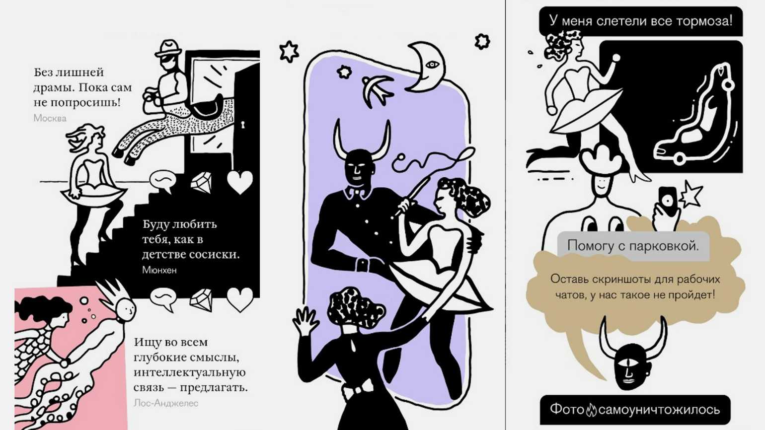 В своём профиле пишут возраст, рост, город проживания, а также выбирают из предложенных вариантов любимые фетиши или сексуальные практики. Ещё в анкете можно разместить до пяти фото и написать короткий рассказ о себе. Профили других пользователей показаны в виде ленты, которую можно прокручивать и лайкать понравившиеся. Если другой человек тоже поставил лайк, то открывается чат для общения.