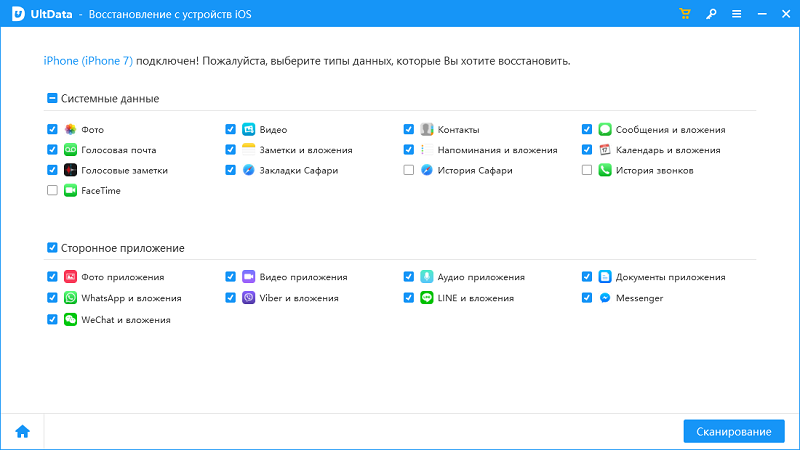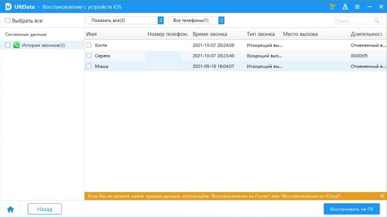 Обратите внимание, что журнал вызовов можно восстановить на iPhone, а можно экспортировать отдельным файлом на компьютер. Дождитесь завершения!. Использовать программу UltData можно на платформе Windows и на MacOS