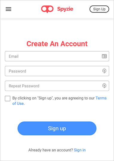 - Во- первых, вы должны создать учетную запись либо на приложение Spyzie или на веб — сайте в spyzie.com