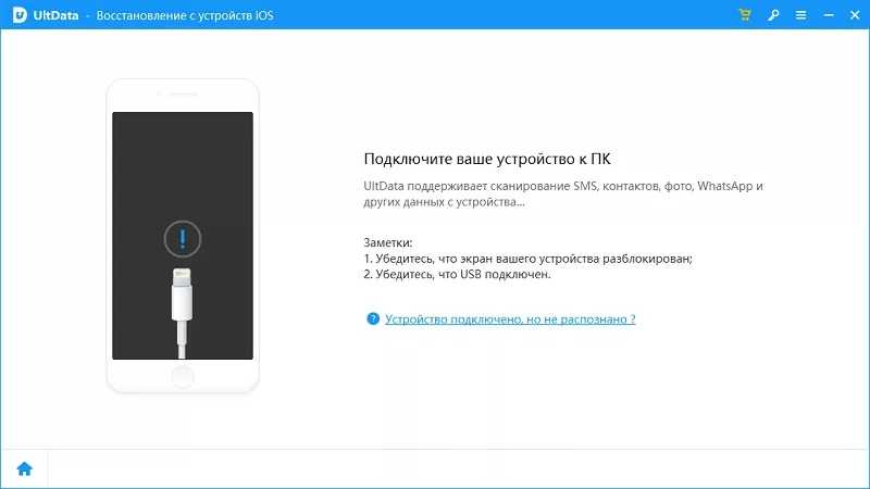 2. Подключите ваш iPhone к компьютеру с помощью USB провода. Далее запустите предварительно установленную программу UltData и дождитесь, пока она идентифицирует ваше устройство.