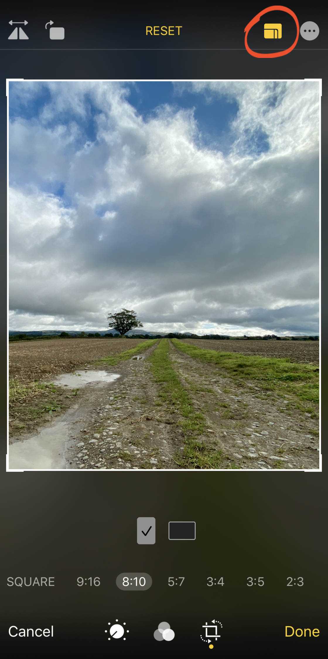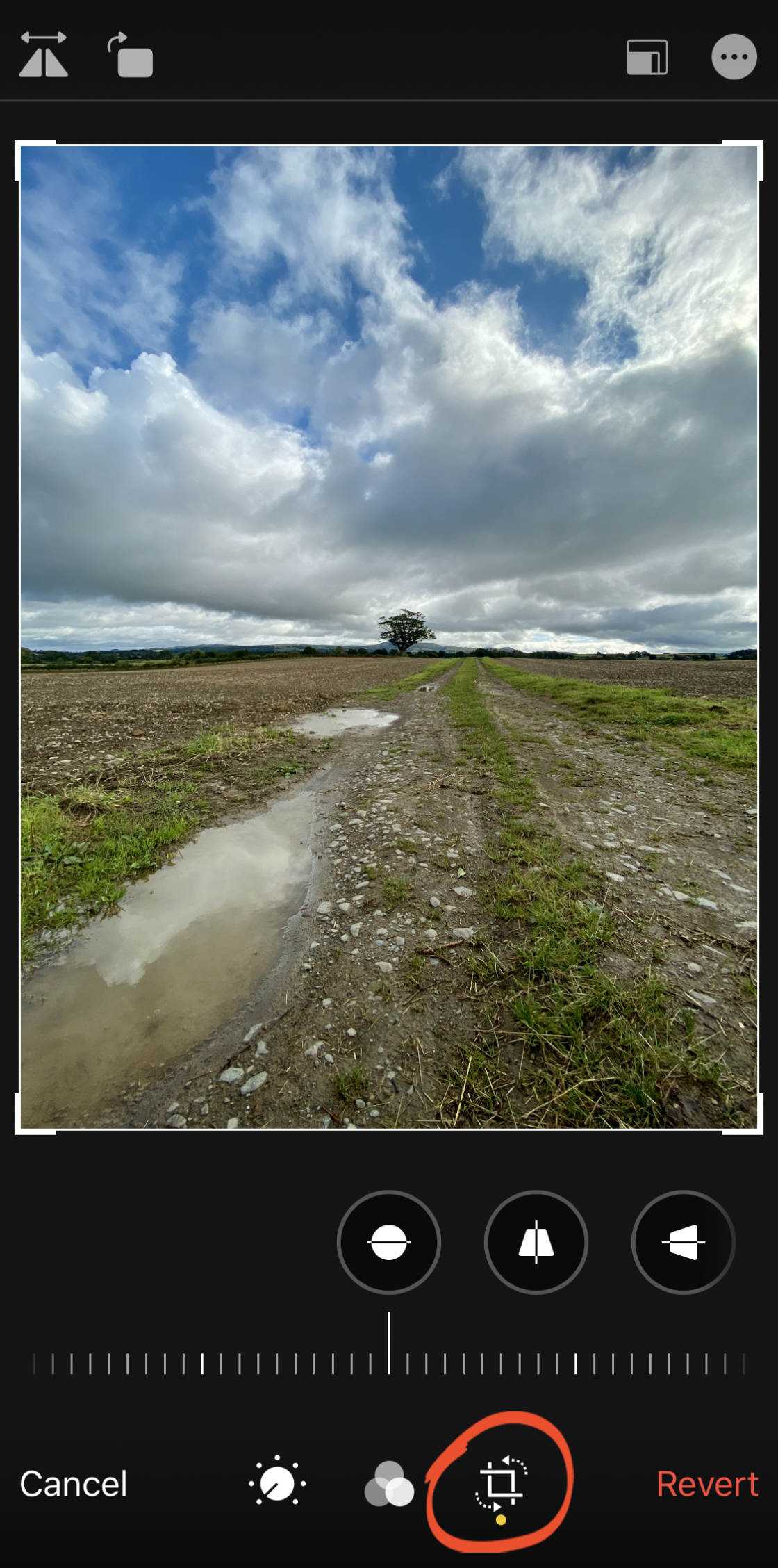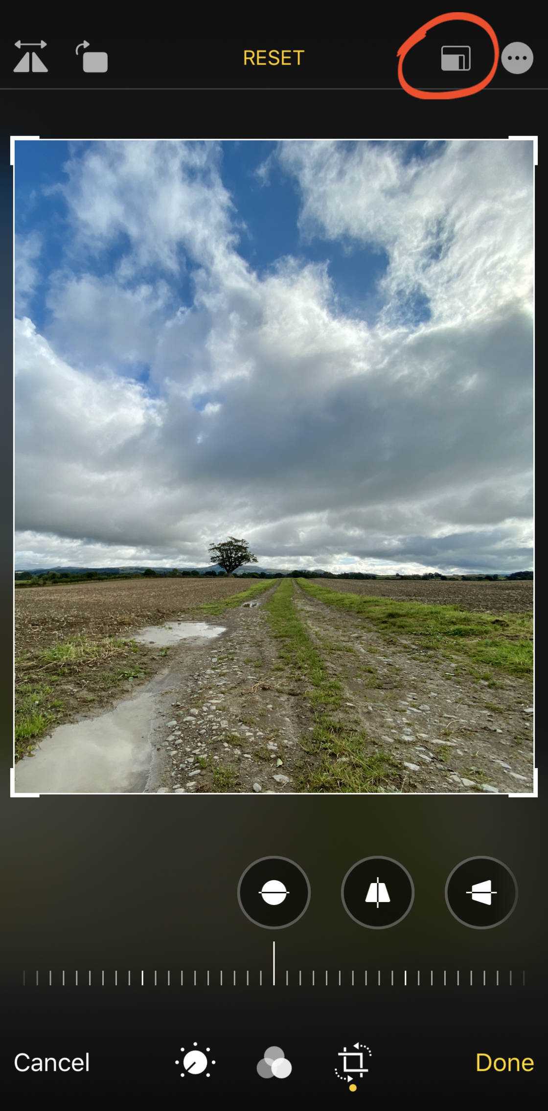Для доступа к этим инструментам нажмите значок Crop в нижней части экрана.