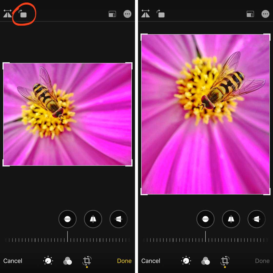 Нажмите значок Повернуть, чтобы повернуть фотографию на 90 градусов за раз.