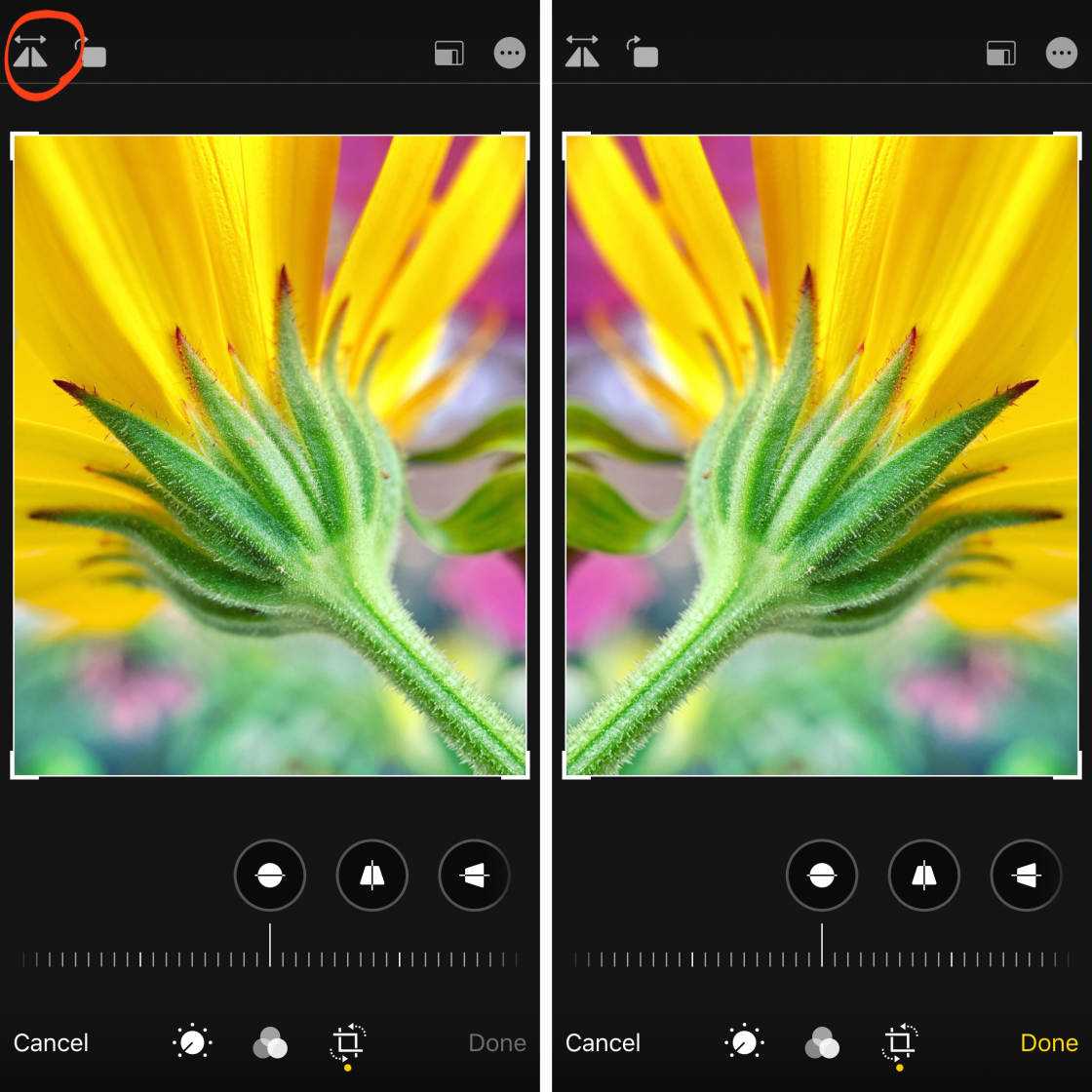 Нажмите значок Flip, чтобы перевернуть изображение по горизонтали.