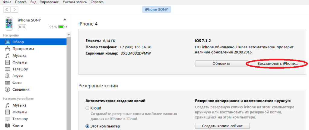 Сбросить iPhone до заводских настроек вам также поможет программа от компании Apple –iTunes. В этом способе вам потребуется ваш ПК и наличие программы iTunes. Чтобы начать процесс сброса, то прежде всего вам нужно выполнить поэтапные шаги :