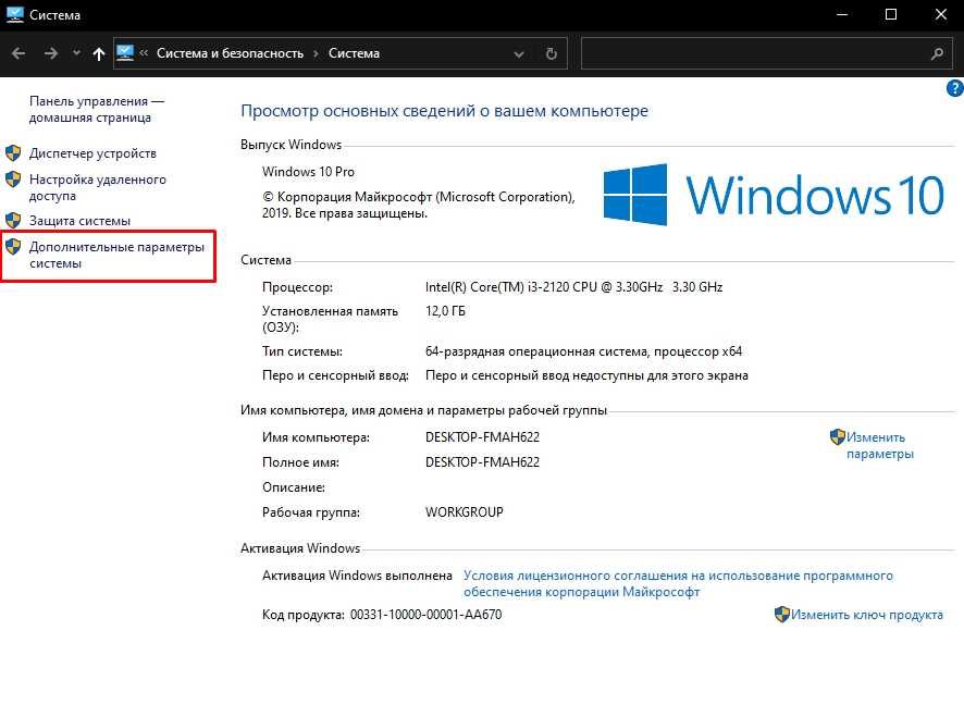 - Откроете окно «Система», в левой его части щелкните по пункту «Дополнительные параметры системы»;