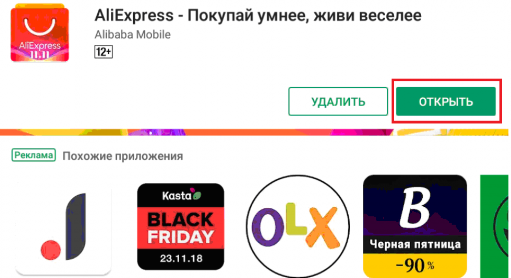 | Прокрутите экран | Введите «AliExpress» в поиск |