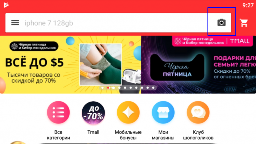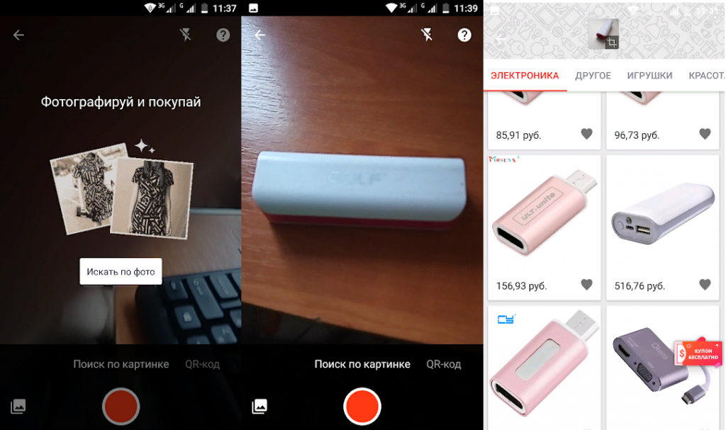 Поиск по картинке подходит пользователям, которые не знают даже приблизительного названия нужного им предмета. Для использования функции следует нажать на иконку с изображением фотокамеры и сфотографировать вещь