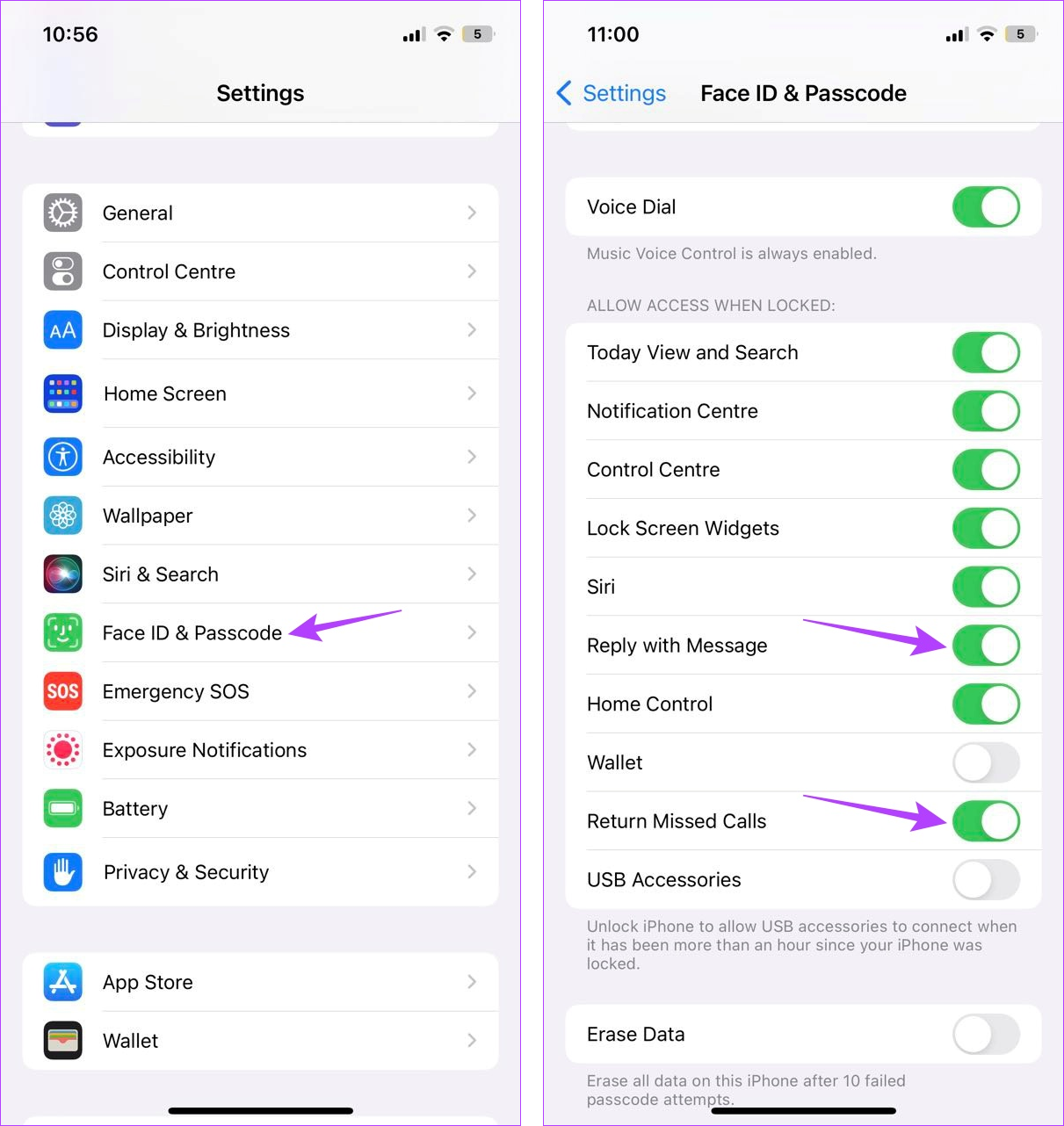 Шаг 3: Перейдите к «Разрешить доступ при блокировке» и выключите переключатель «Ответить на пропущенные вызовы».