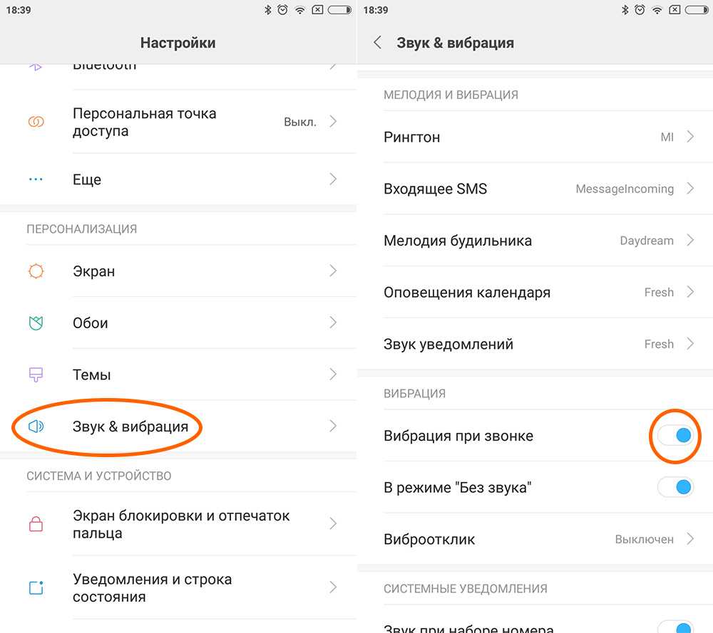 - Вибрация: включение вибрации для звонков и уведомлений.