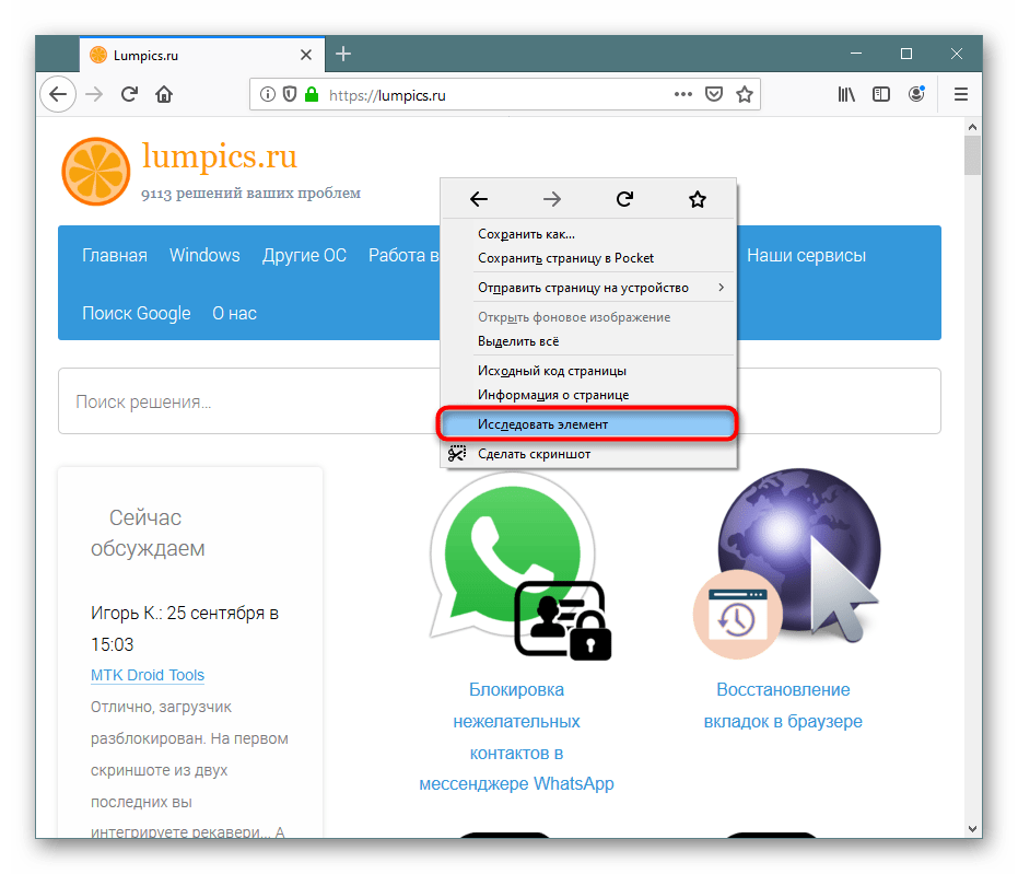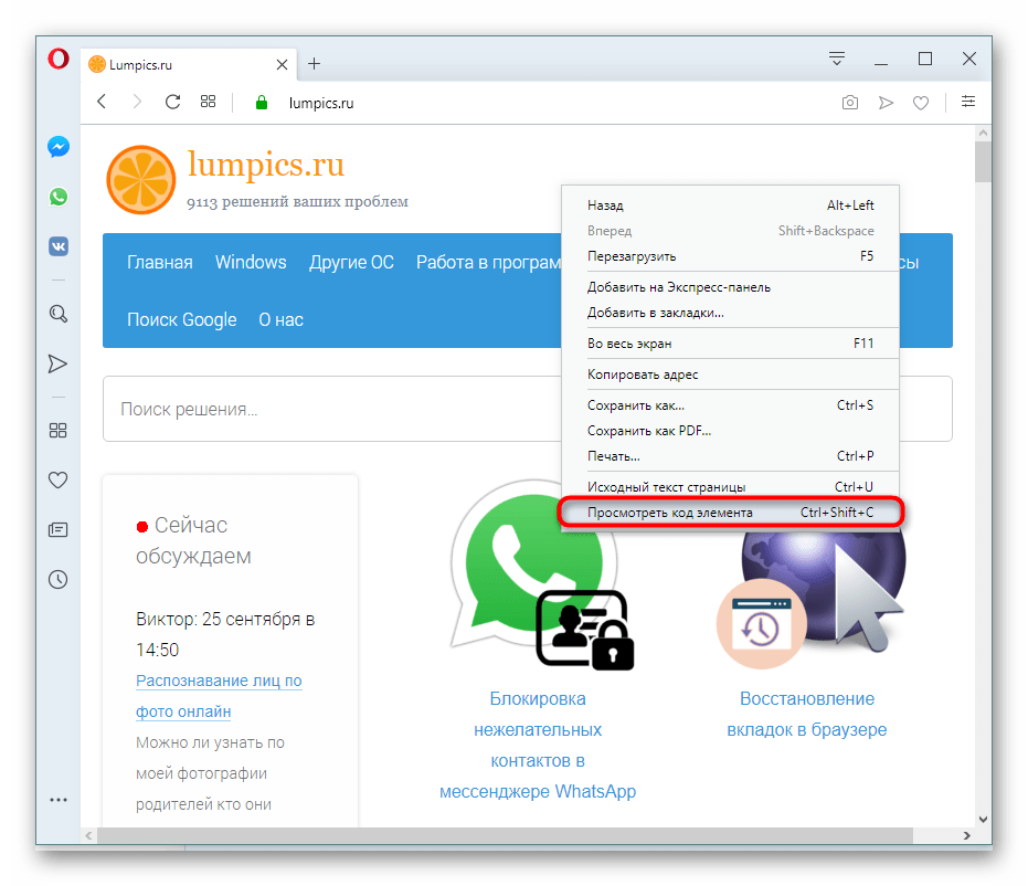 - Щелкните правой кнопкой мыши на любой странице и в открывшемся меню выберите вариант «Просмотр кода элемента». …