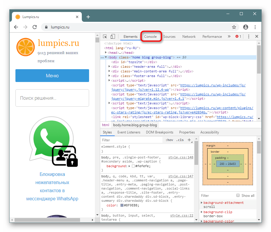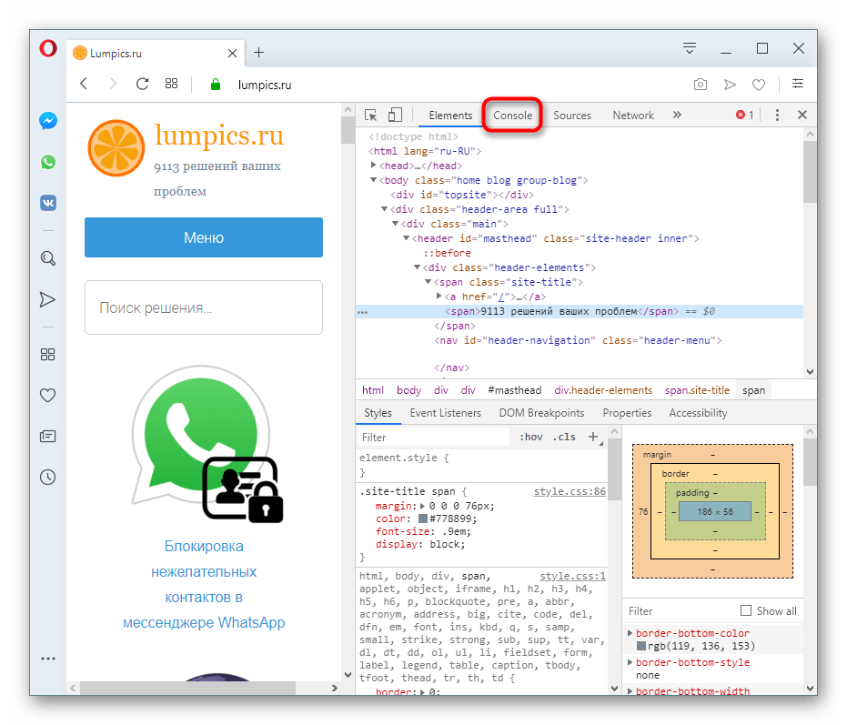 Консоль в браузере – это удобное средство, которое позволяет просматривать ошибки, которые возникли при загрузке страницы и взаимодействовать с этой страницей с помощью специальных команд.