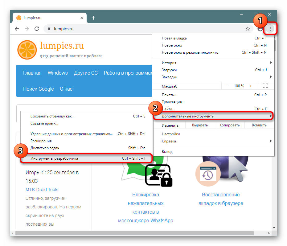 Затем кликните на «Дополнительные инструменты» в раскрывающемся меню и выберите «Инструменты разработчика».