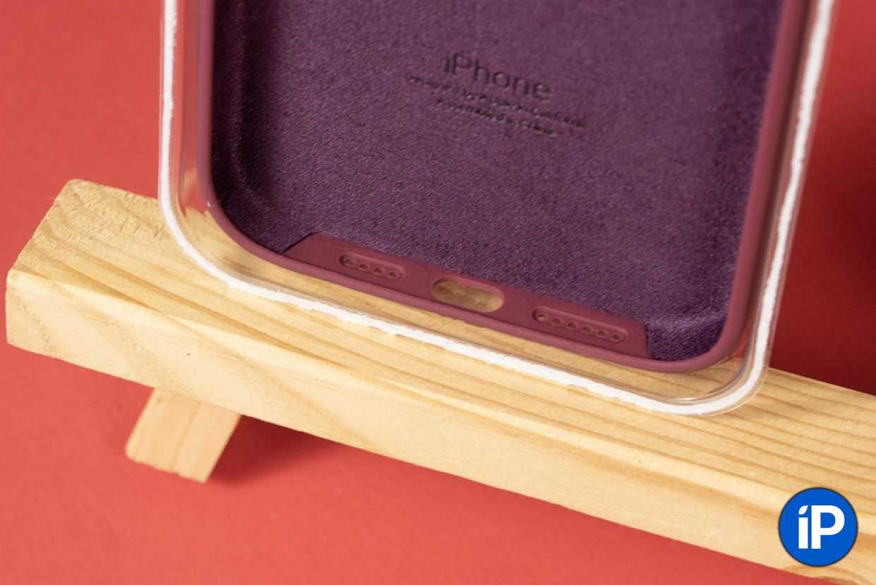 Оригинальный чехол Apple точно соответствует размерам iPhone, не имеет лишних сколов или вмятин