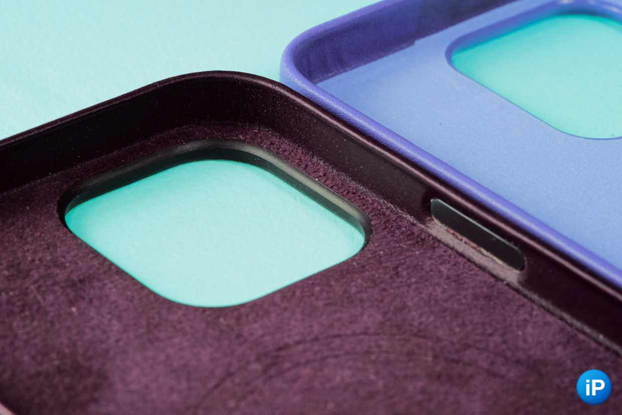 Второй момент, который выдаёт подделки — Внутренняя сторона чехла. Изнутри, аксессуар имеет покрытие из микрофибры, что помогает избегать повреждений корпуса при попадании пыли. На оригинальных изделиях, микрофибра мягче, плотно прилегает к краям без зазоров, не отклеивается, в отличии от реплики.