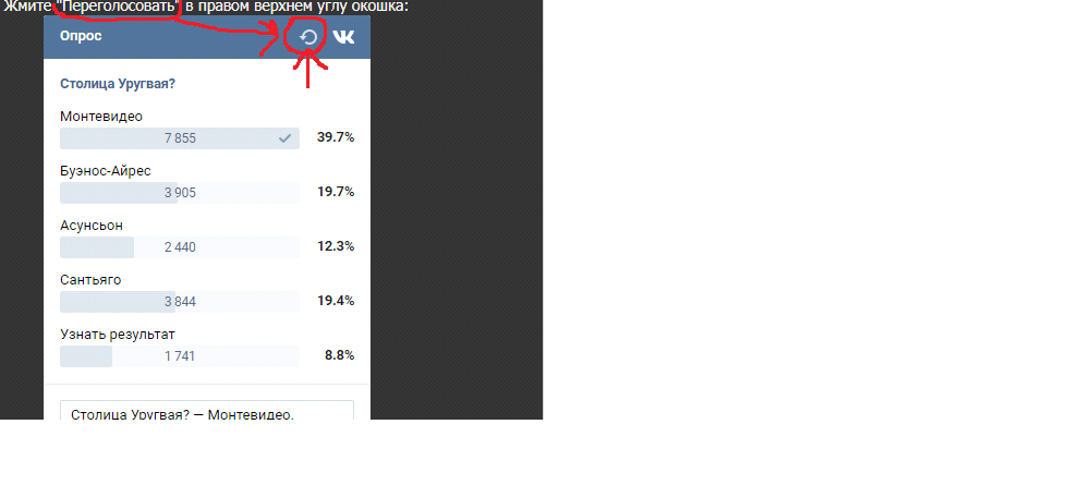 Если возникла необходимость посмотреть результат опроса, то предстоит выполнить несложные действия: