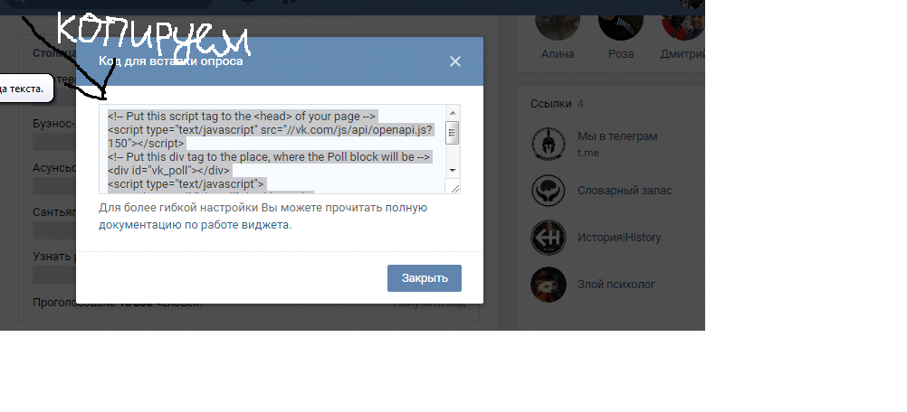 Этот способ является более упрощенным и подойдет большей части пользователей социальной сети VK.com. Главное, не забывайте, что от вас требуется использовать код опроса, взятый на сайте ВК.