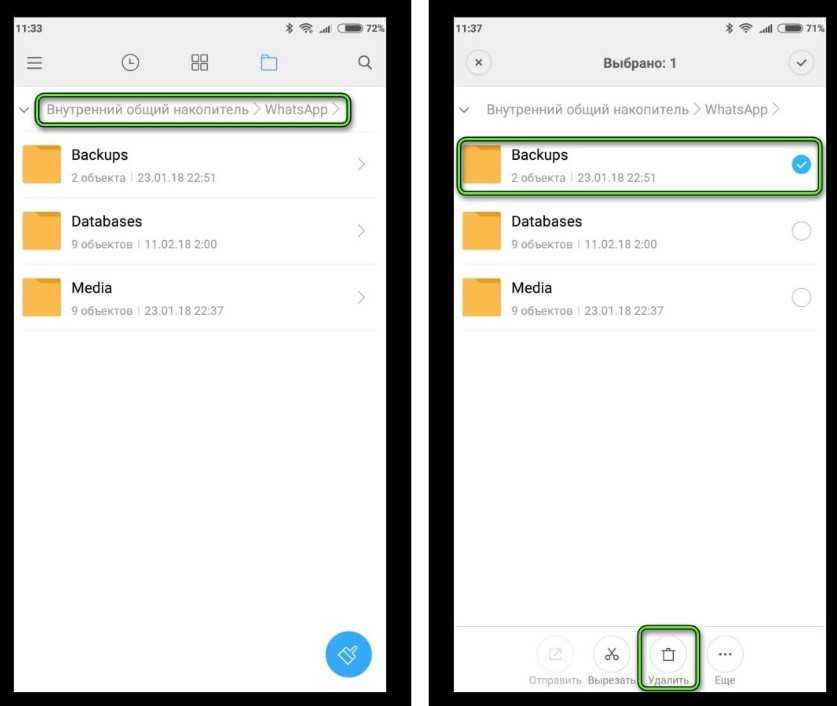 Теперь над зеленой кнопкой «Резервная копия» будет отображаться только статистика локальной копии. Она создается ежедневно, пока «Ватсап» включен, и полностью стирается с телефона после переустановки программы. На «андроидах» очистка всех данных доступна в «Диспетчере приложений».