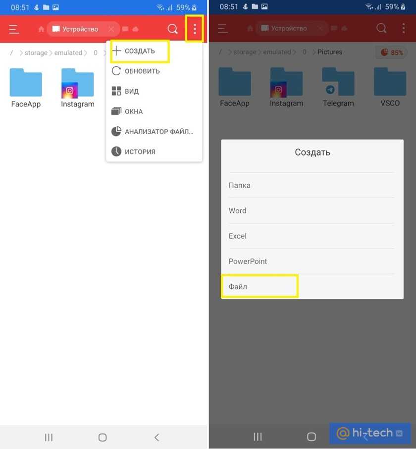 Нажимаем на три точки в верхнем правом углу приложения → «+Создать» → Файл. Называем файл.Thumbnails (обязательно ставим точку вначале).