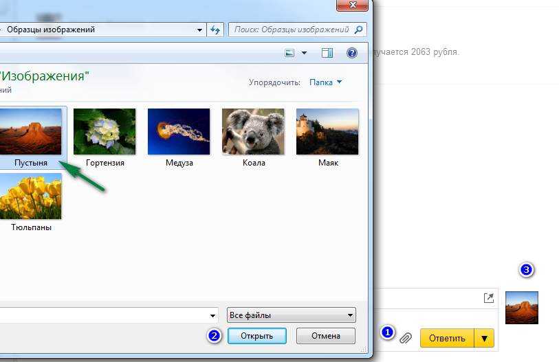 При ответе на сообщение, нажмите на иконку в виде скрепки, выберите нужную фотографию, после загрузки она появится справа от формы сообщения.