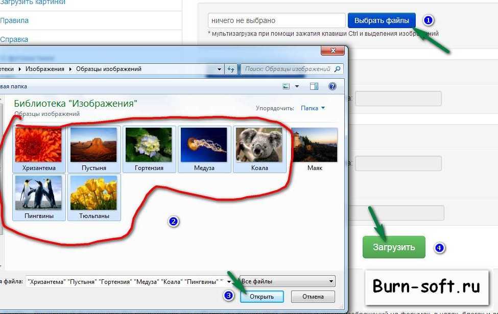 , и выбираем нужные картинки кнопкой «Выбрать файлы» (до 20 штук), затем, жмем кнопку загрузить.