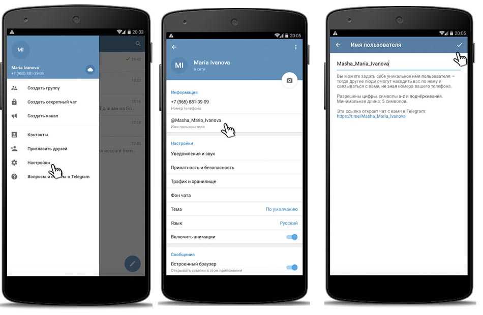 Изменение имени пользователя приложения «Телеграмм»