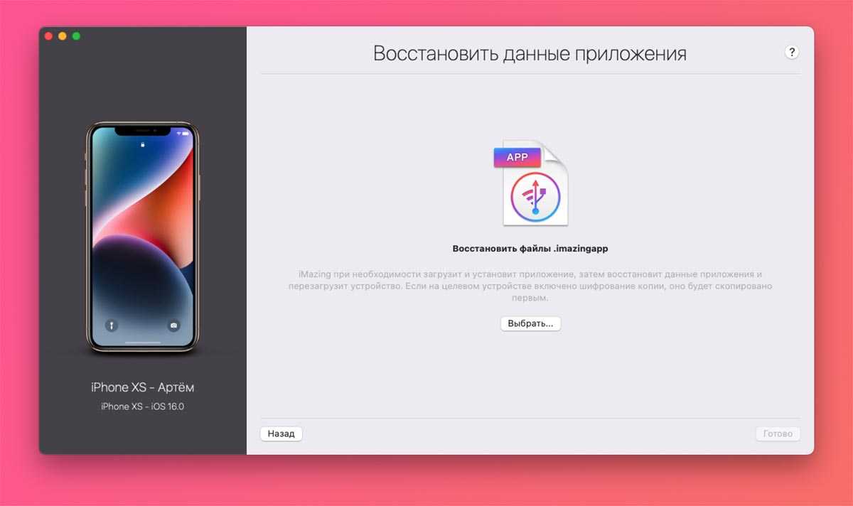 Чтобы восстановить сохраненное приложение на новом iPhone, подключите его к компьютеру и запустите iMazing.