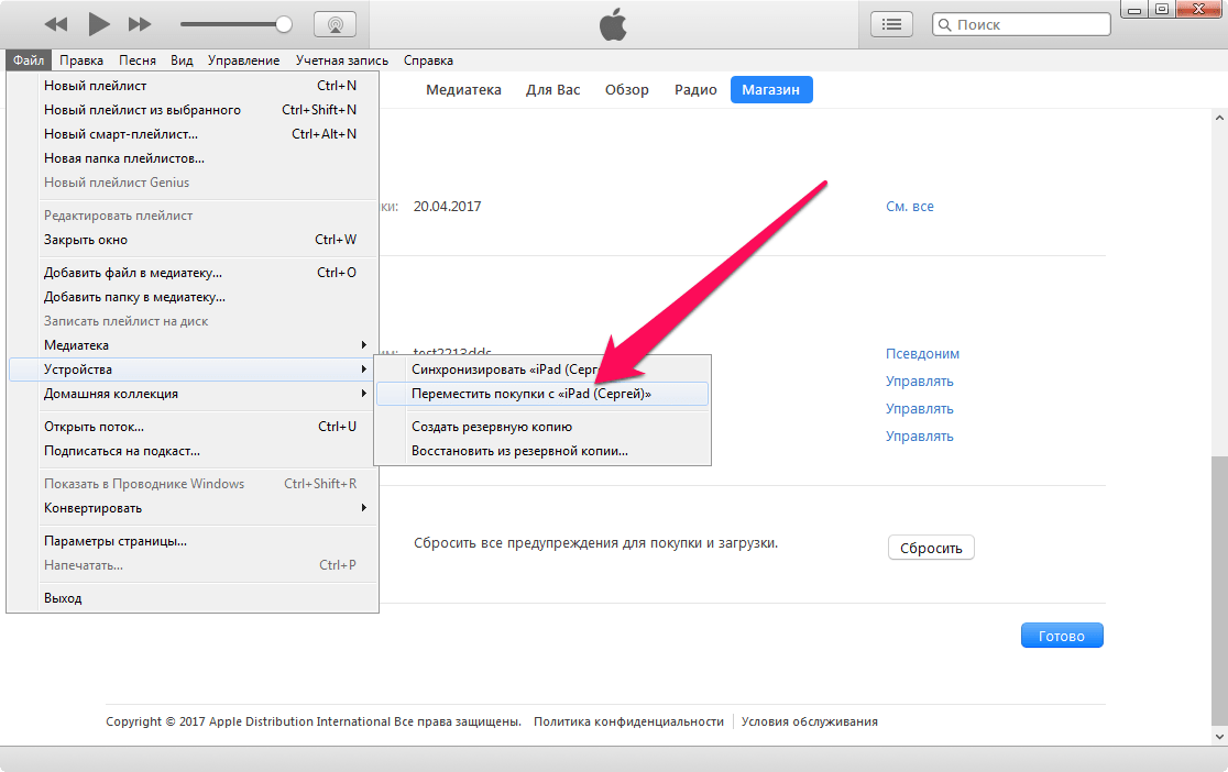 Готово! Проверить успешный перенос данных с iPhone в iTunes вы можете в меню «Правка