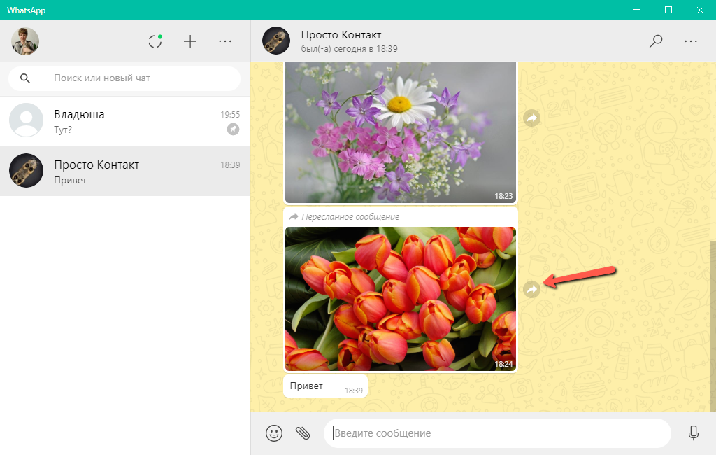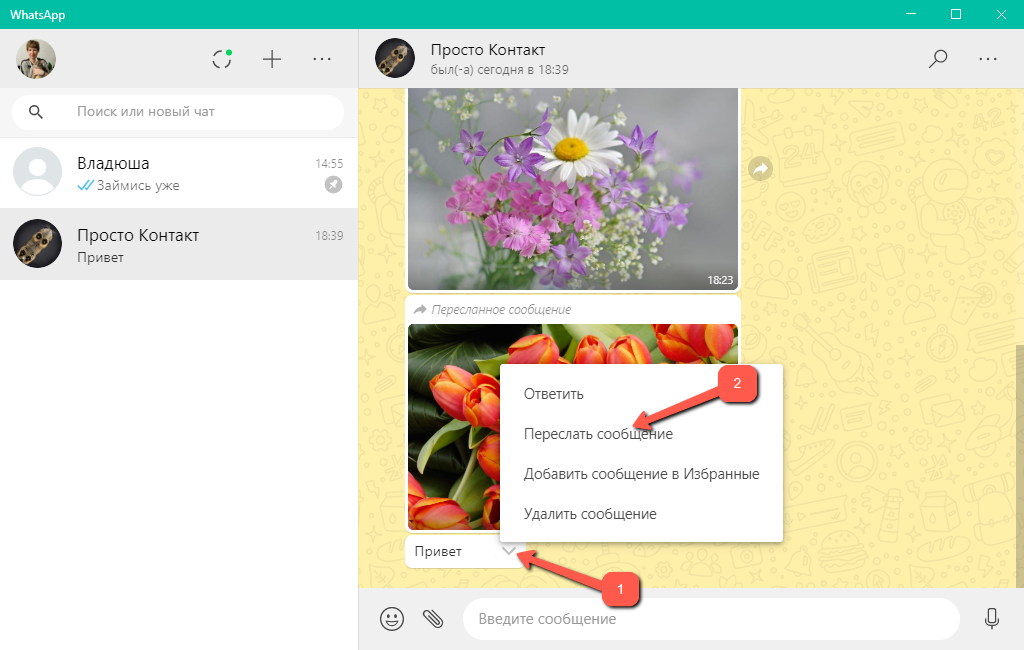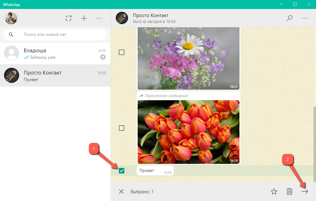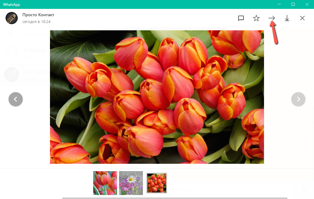 Пересылка сообщений в WhatsApp для Windows
