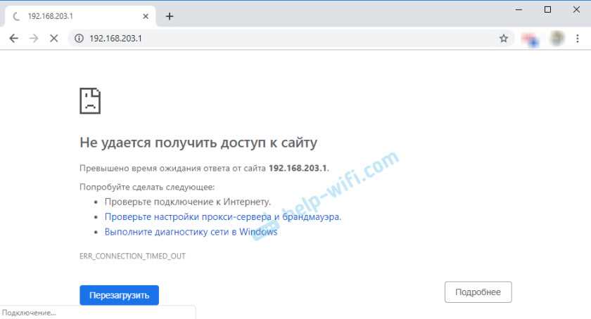 Очень частая проблема, когда не заходит в настройки MiraScreen или AnyCast адаптера. Страница по адресу 192.168.203.1 просто не открывается и настройки недоступны. Обычно появляется ошибка «Не удается получить доступ к сайту. Превышено время ожидания ответа от сайта 192.168.203.1».
