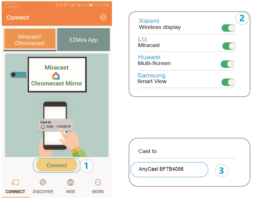 Noted: Make sure both AnyCast and smart devices connected to the same wifi router.