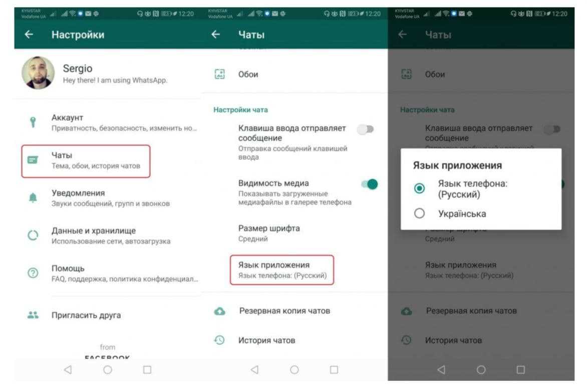 В некоторых странах изменить язык интерфейса можно в самом мессенджере, не касаясь глобальных настроек смартфона. Для этого нужно выполнить следующие действия: